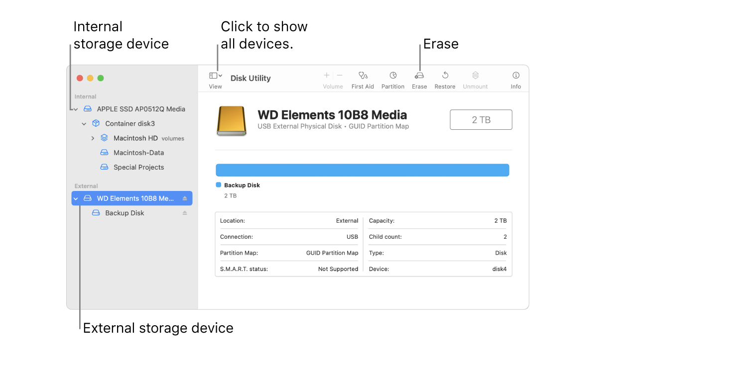 ํ์๋จธ์ ์ผ๋ก ์ฌ์ฉํ๋ ์ธ์ฅํ๋๋ฅผ ์ด๊ธฐํํ๋ ค๋ฉด ๋์คํฌ ์ ํธ๋ฆฌํฐ(Disk Utility)๋ฅผ ํ์ฉํ๋ฉด ๊ฐ๋จํ๊ฒ ํด๊ฒฐํ ์ ์์ต๋๋ค.