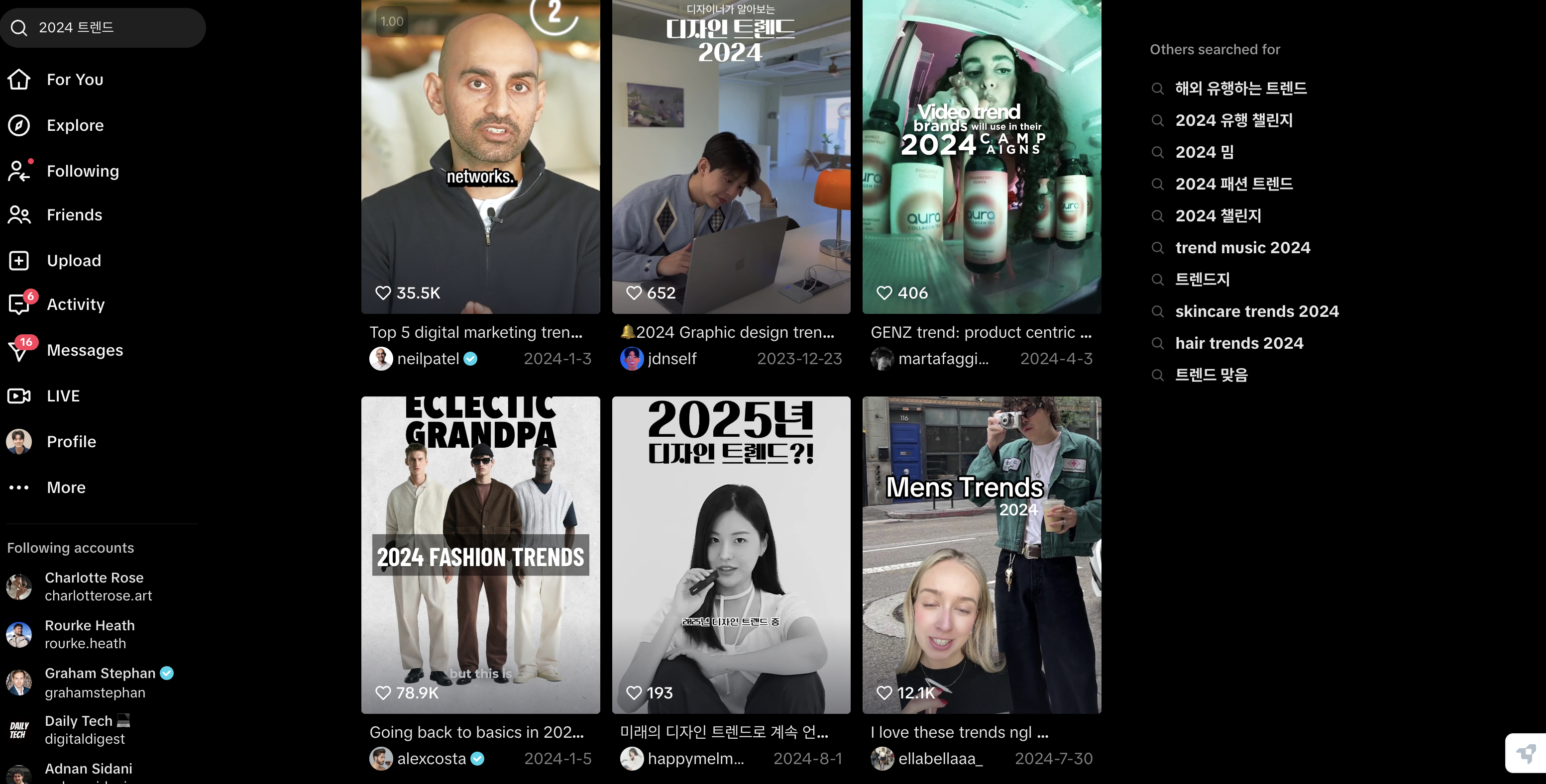 - ํฑํก์์ ํน์ ํค์๋๋ฅผ ๊ฒ์ (์: "2024 ํธ๋ ๋", "Z์ธ๋ ํซํ ")
