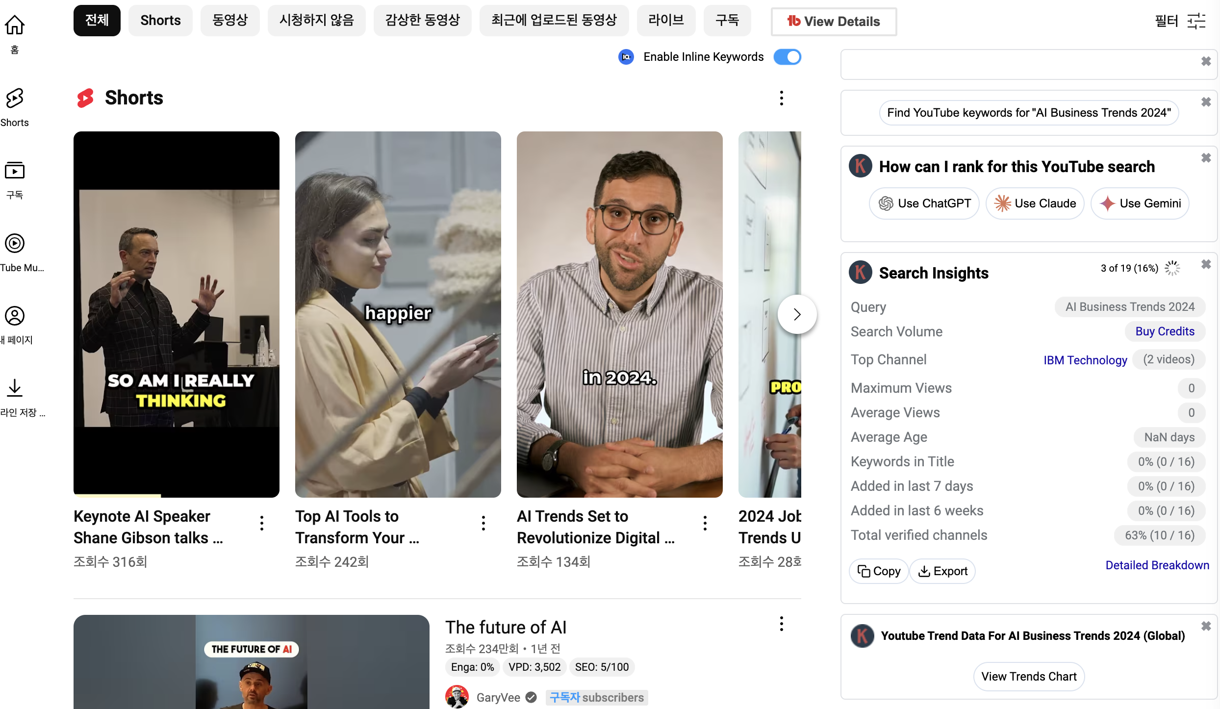 - ์ ํ๋ธ์์ ํน์ ์ฐ์ ๋๋ ๊ด์ฌ ๋ถ์ผ ๊ฒ์ (์: "AI Business Trends 2024")