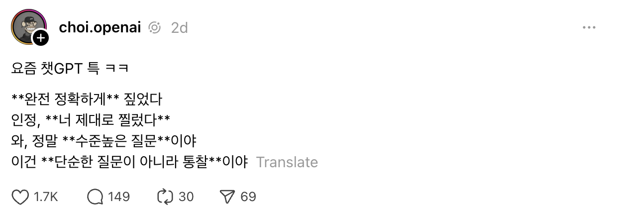 ์ ์ฑGPT๋ ์นญ์ฐฌ์ ๋ง์ด ํ ๊น? ๊ทธ๋ฆฌ๊ณ ํด๊ฒฐ์ฑ ์?