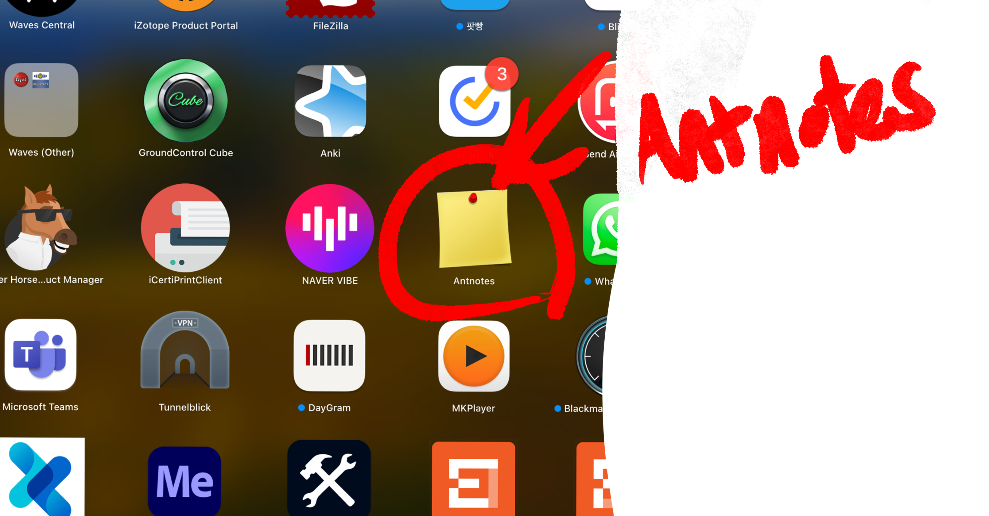 ธํธ์ ๋ด์ฉ์ด ๋ชจ๋ ์ฌ๋ผ์ก์ต๋๋ค. (Antnotes๋ ๋งฅOS์์ ๊ฐ์ฅ ๋ง์ด ์ฌ์ฉ๋๋ ํฌ์คํธ์ ์ฑ์
