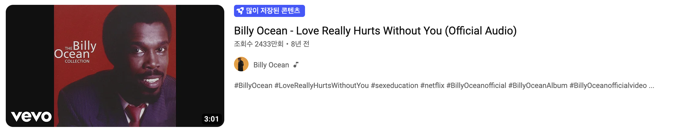 ์๋ จํจ์ด ์ ๋ก ํผ์ด์ค๋ฅด๋ ์์ 'love really hurts without you' by Billy Ocean